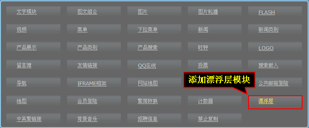 2、點(diǎn)擊添加“漂浮層模塊