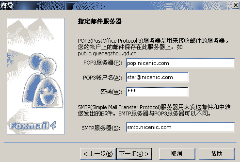 現(xiàn)在我要告訴大家使用的是FOXMAIL4.0如何設(shè)置我公司提供的郵件系統(tǒng)。(只要按照我提供的圖片來進(jìn)行設(shè)置就可以正確使用了)