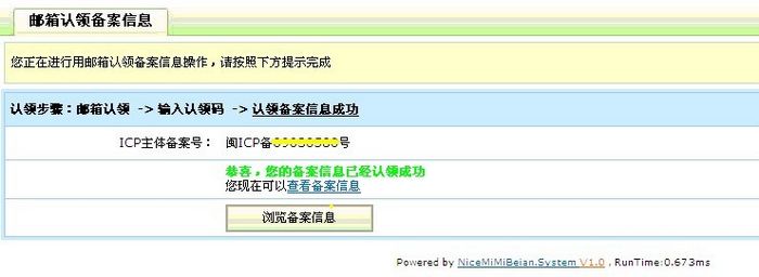 3 步:備案信息通過(guò)郵箱認(rèn)領(lǐng)成功