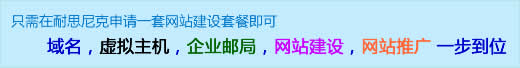 2、只需在耐思尼克申請(qǐng)一套網(wǎng)站建設(shè)套餐即可(域名,虛擬主機(jī),企業(yè)郵局,網(wǎng)站建設(shè),網(wǎng)站推廣)一步到位